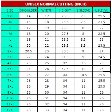| Size | 2XS, XS, S, M, L, XL, 2XL, 3XL, 4XL, 5XL, 6XL, 7XL, 8XL, 9XL, 10XL, 11XL, 12XL |